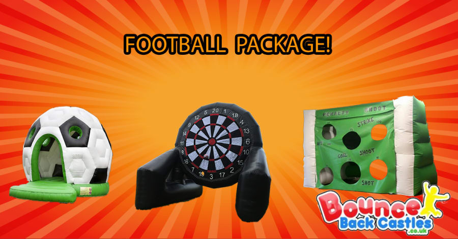 This is a brilliant option for football team fun days, and all of the items in this package are suitable for adults as well as children, allowing everyone to participate! Our huge football dartboard has Velcro on both sides, allowing twice as many people to use it at once. You also get the brilliant football shaped bouncy castle, which gives that extra cool feel, especially as Football themed events and tournaments, and you also get the penalty shootout, which is good for target practice before taking your shot at the giant dartboard!