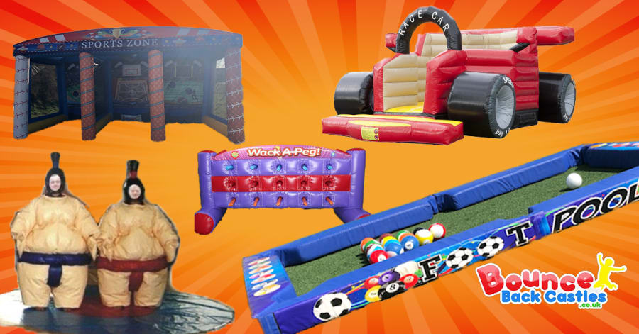 The Ultimate Sports Package Plus consists of our formula one adult bouncy castle, foot-pool, three in one sports game, sumo suits & whack-a-peg.