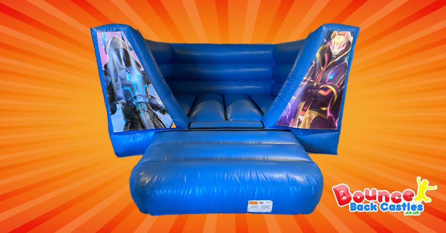 The Fortnite low height bouncy castle is great for indoor venues that have low ceiling heights. We have this bouncy castle available in multiple themes and it is also suitable for outdoor use.