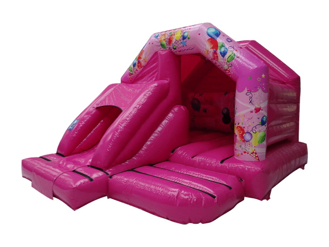 This Pink Bounce and Slide is also disco ready, so you can add a light and speaker on for an additional £30.00, turning it into a Disco Dome. Please let us know when booking if you wish to add the Disco Light and Speaker on to the order.