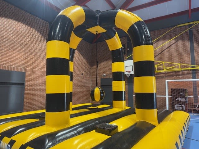 Bring the excitement of action-packed events right to your location with our Yellow & Black Wrecking Ball! Perfect for parties, corporate gatherings, festivals, or just a fun day out, this four-player inflatable wrecking ball guarantees unforgettable moments of laughter and adventure. Its striking yellow and black design not only catches the eye but also adds vibrant energy to any event.