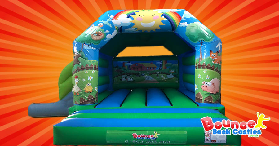 A brilliant new addition to the 2020 range, this farm yard themed bouncy castle with slide is perfect for toddler birthday parties and if there are going to be some older children at your event too then they can also join in the fun.
