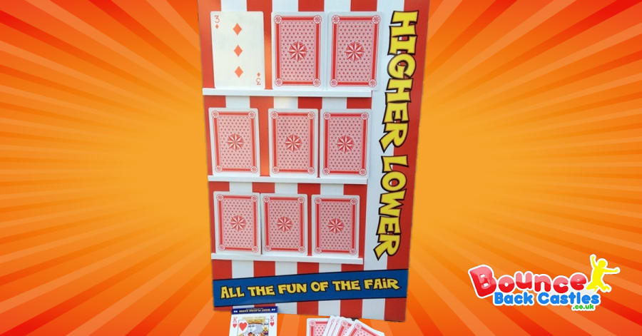 The game is simple and the player simply has to guess if the next card will be higher or lower than the previous card. How the game is run is entirely up to you, but it usually works very well when prizes are given for a certain amount of accurate predictions in a row. The higher or lower games fits in perfectly at school events and due to its colour scheme also works great with our Helter Skelter Inflatable Slide. We also have other similar games in our Garden Games section.