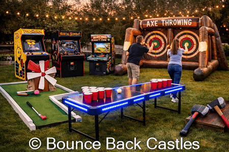 The soft axes and inflatable setup make it safe and accessible, while still giving that satisfying challenge of aiming and hitting the target. It is particularly effective at corporate team-building events, festivals, community fairs and larger parties where you want something that draws attention and keeps people engaged.
