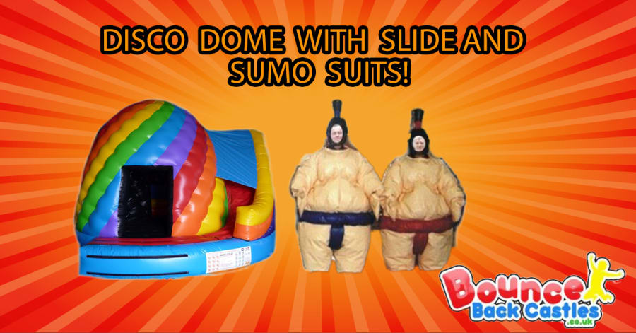 Want to dance, bounce, slide and wrestle? If so then this is the package for you! Firstly you get our candy coloured disco dome, complete with a speaker and disco light - you connect your phone, tablet or other Bluetooth enabled device to the speaker and then play your favourite tunes directly from your device PLUS is suitable for children and adults! You also get to wrestle out your differences in our competitive sumo suits game, complete with two suits, two helmets, and a circular mat. What's more? Well you also save over £60.00 from our standard prices with this package deal!